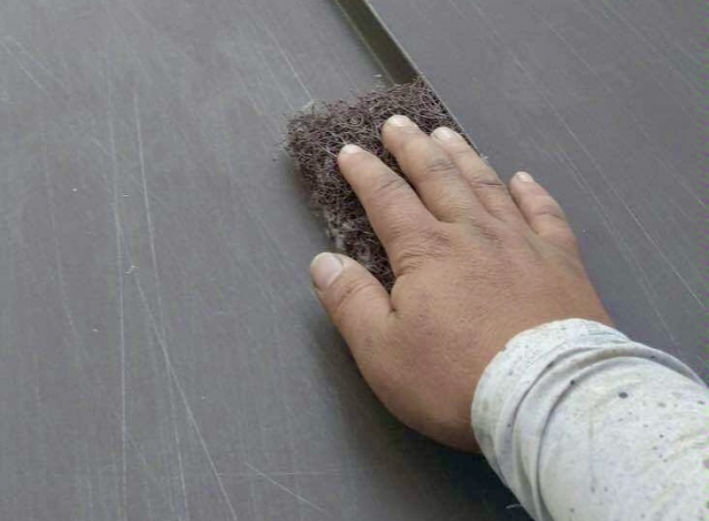 その後、錆びている部分があれば、ワイヤーブラシやサンドペーパーなどで丁寧に錆びを落とします。