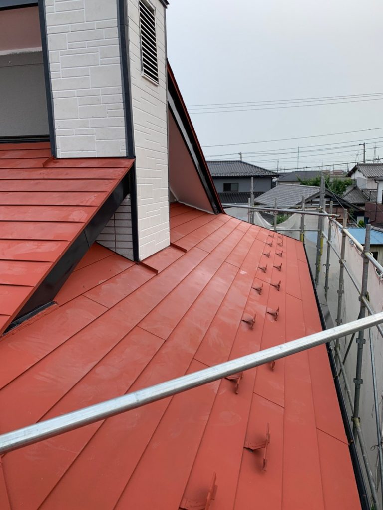 また、金属屋根にはエポキシ系防錆塗料を塗装。今回は日本ペイント ハイポンファインデクロ という塗料を施工いたしました。
