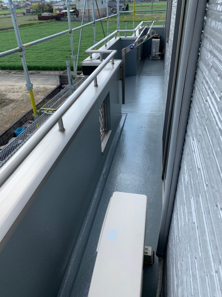 付帯部への塗装を行った後、ベランダの防水工事をして全ての作業が終わりました。