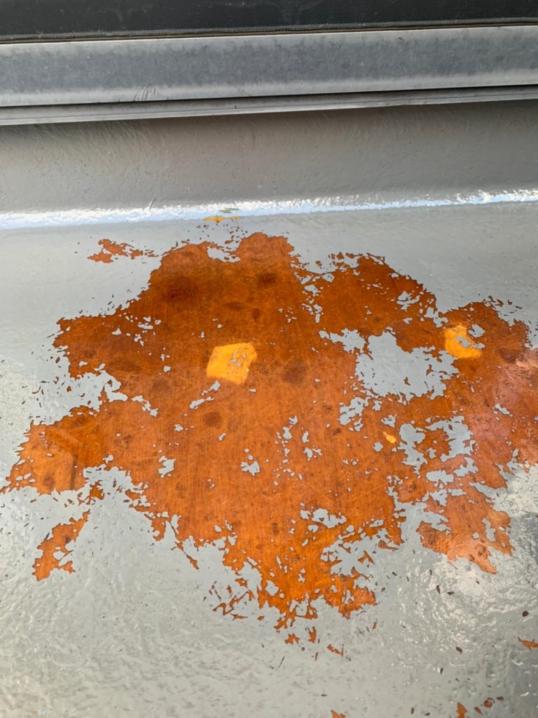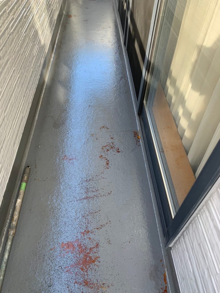 バルコニー床も、はがれているトップコートをきれいに剥がし、FRP防水層を保護するトップコートを施工。