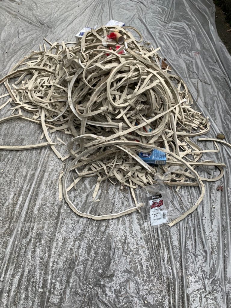 ↑撤去した目地。1軒分の目地を撤去するとこれだけの多さのシーリング材が廃棄されます。シーリングを撤去するだけでも、かなりの手間がかかるのです。