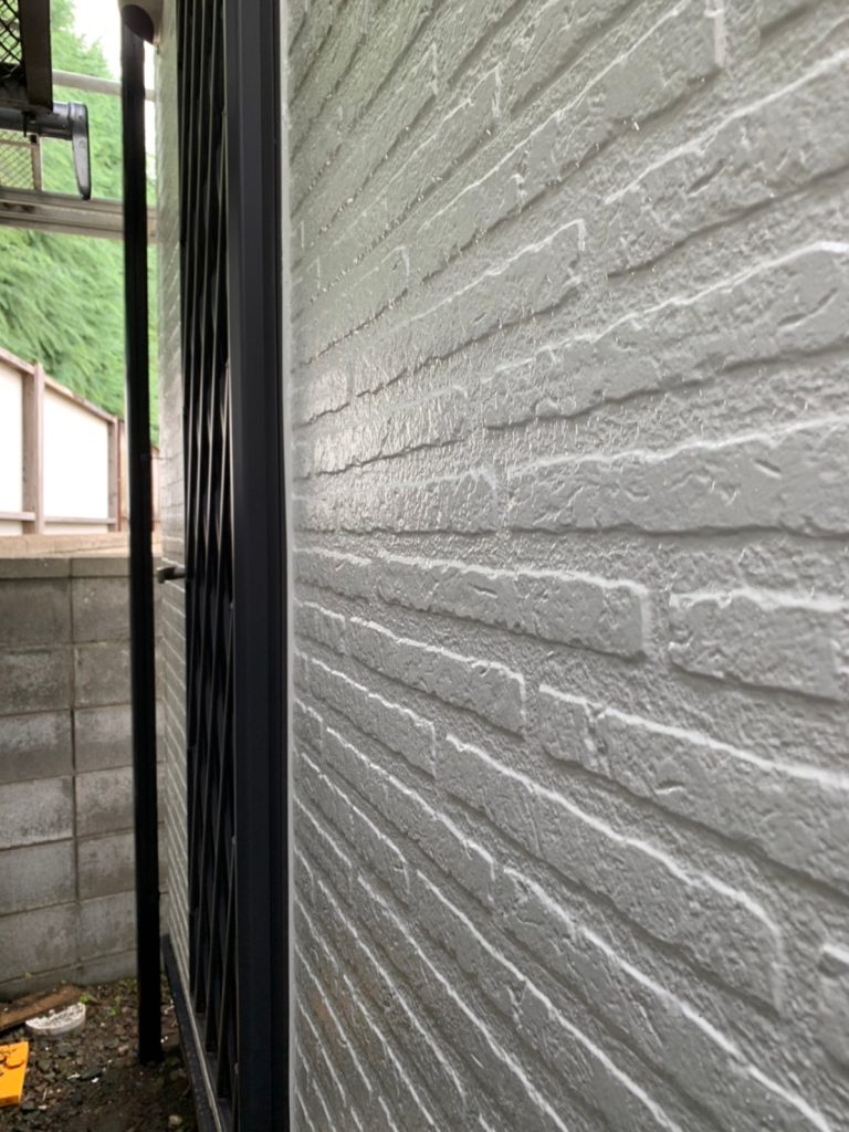 ↑中塗り~上塗り 施工後。3回しっかりと塗膜をつけていくことで、これだけの艶が出てきます。新築以上の輝きを取り戻す、塗り替え施工の喜びの瞬間です。