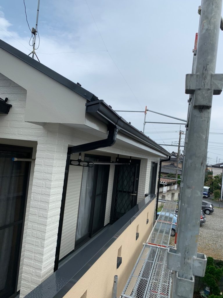 ↑今回は雨樋も交換しました。破損部もあったこともあり、年数的に足場をかけた時にしっかりと手をかけましょう!ということで、全ての樋も交換いたしました。