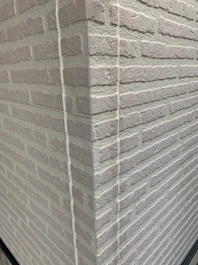↑外壁目地シーリング打ち替え後。オートンイクシード15+という高耐久シーリング材を施工。しっかりと目地の深さに合わせてシーリング材を充填していくことが、今後の耐久性にも関わってきます。