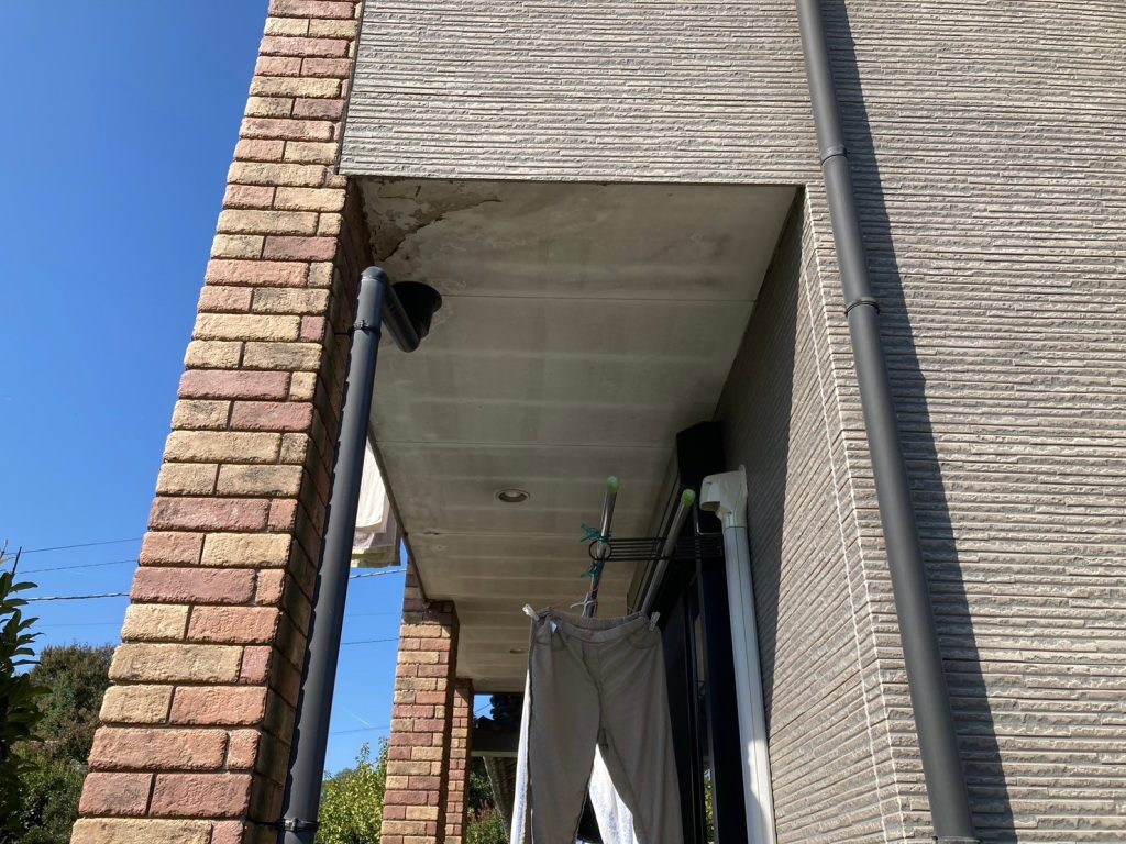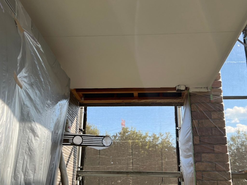 こちらのお宅では、外壁やシーリングの劣化もありましたが、軒天井の一部分に雨漏れの跡があり、下地の板も腐食していましたので、一度剥がして下地板も張り替えて塗装を行いました。