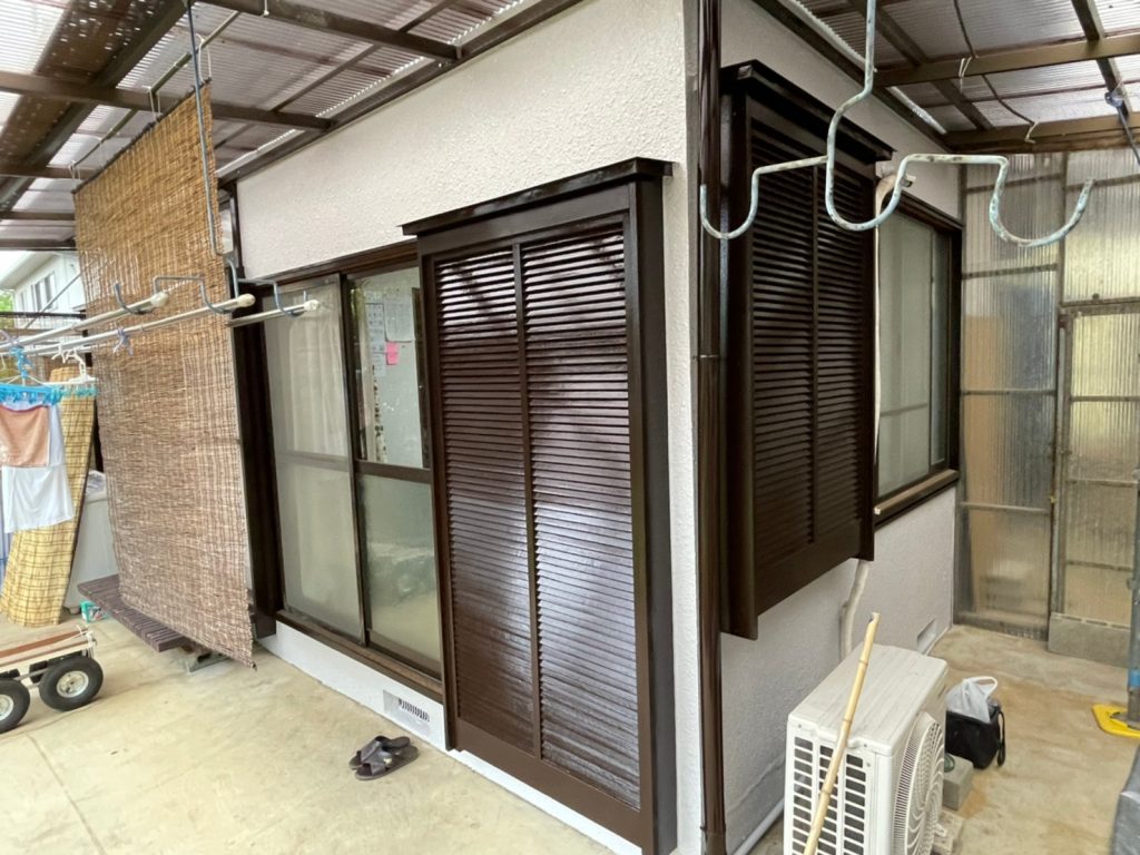 戸袋や窓枠の木部もこれだけきれいになります!艶が戻ってお家も20歳?30歳?若返った感じです。