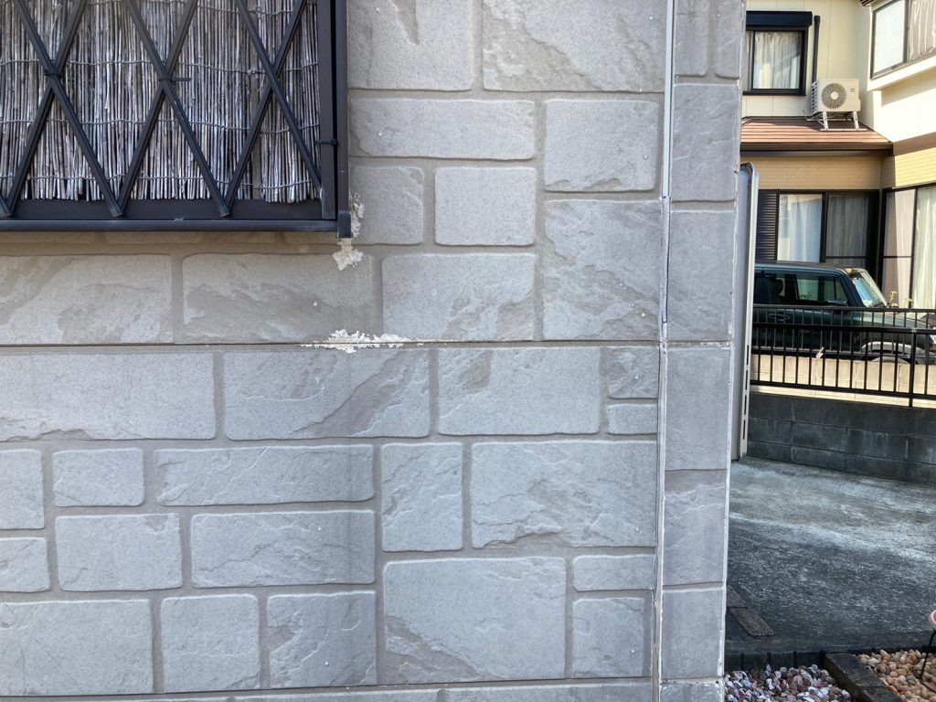 ↑この写真のとおり、外壁目地などのシーリング材も硬化が進み、部分的に落ちかけたりしています。この状態を放置しておくと、外壁材のサイディングの強度低下・劣化、構造材への雨漏れ~腐食など、構造耐力上の問題にもつながりかねません。